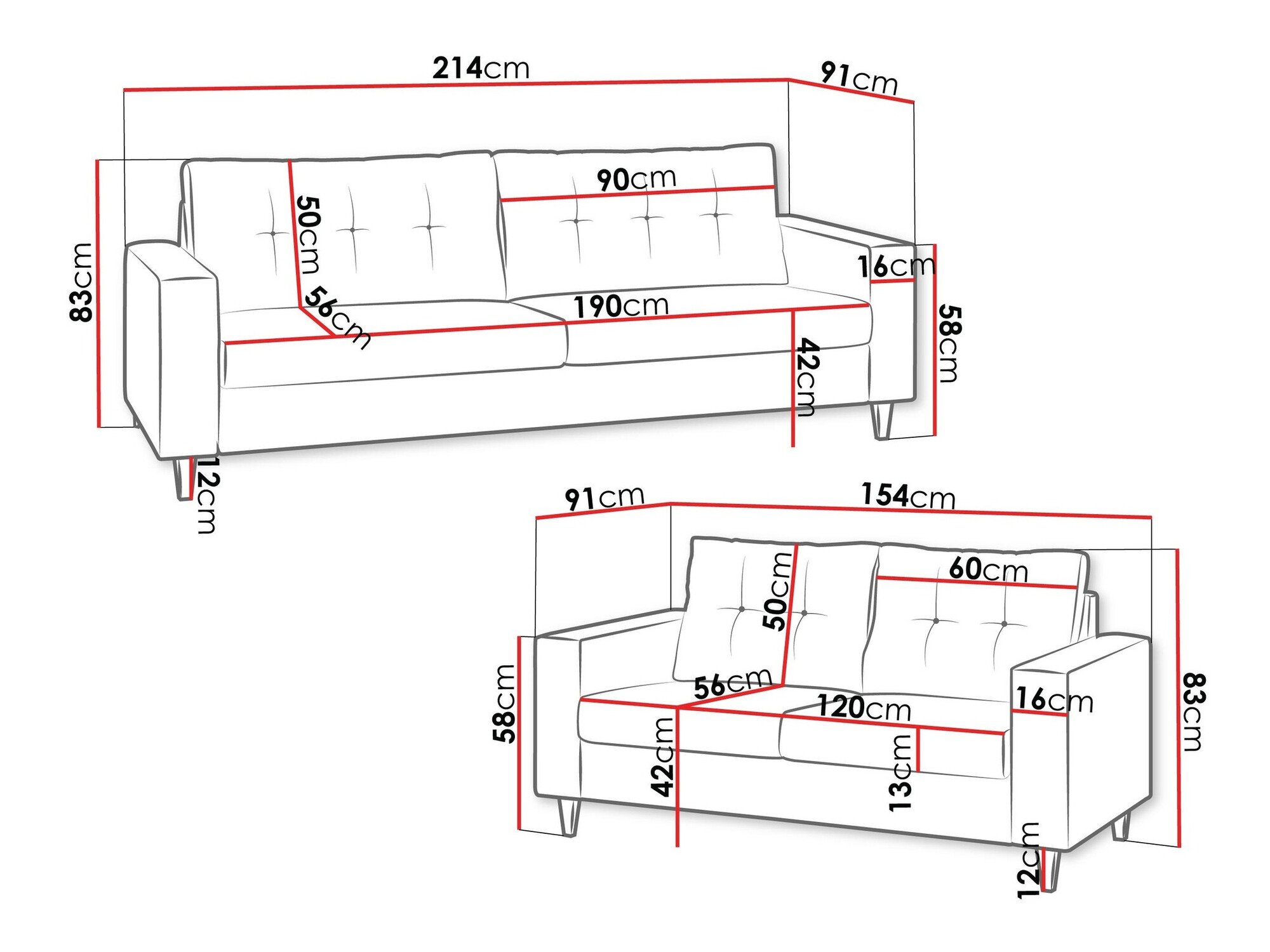 Dimensions du canapé 2 places: