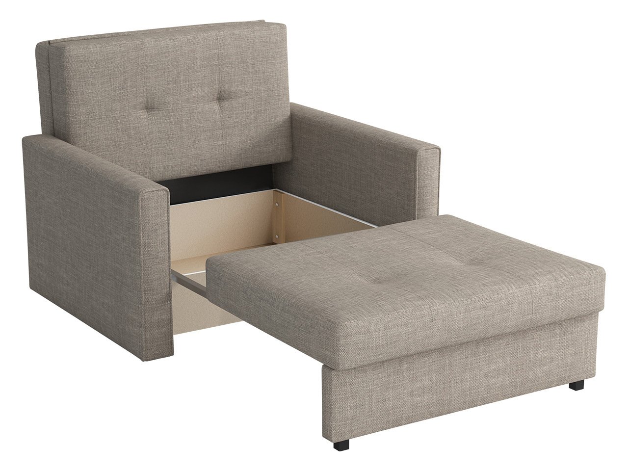 Ce mécanisme de ce meuble est unique en ce sens que la partie qui se déplace le fait sans toucher le sol, ce qui protège ce dernier d'éventuelles rayures. Il suffit de soulever le siège et de le tirer légèrement vers soi. Il suffit ensuite d'abaisser l'arrière du meuble pour préparer une place pour dormir.