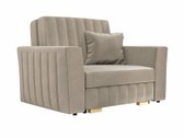 Ce mécanisme de ce meuble est unique en ce sens que la partie qui se déplace le fait sans toucher le sol, ce qui protège ce dernier d'éventuelles rayures. Il suffit de soulever le siège et de le tirer légèrement vers soi. Il suffit ensuite d'abaisser l'arrière du meuble pour préparer une place pour dormir.