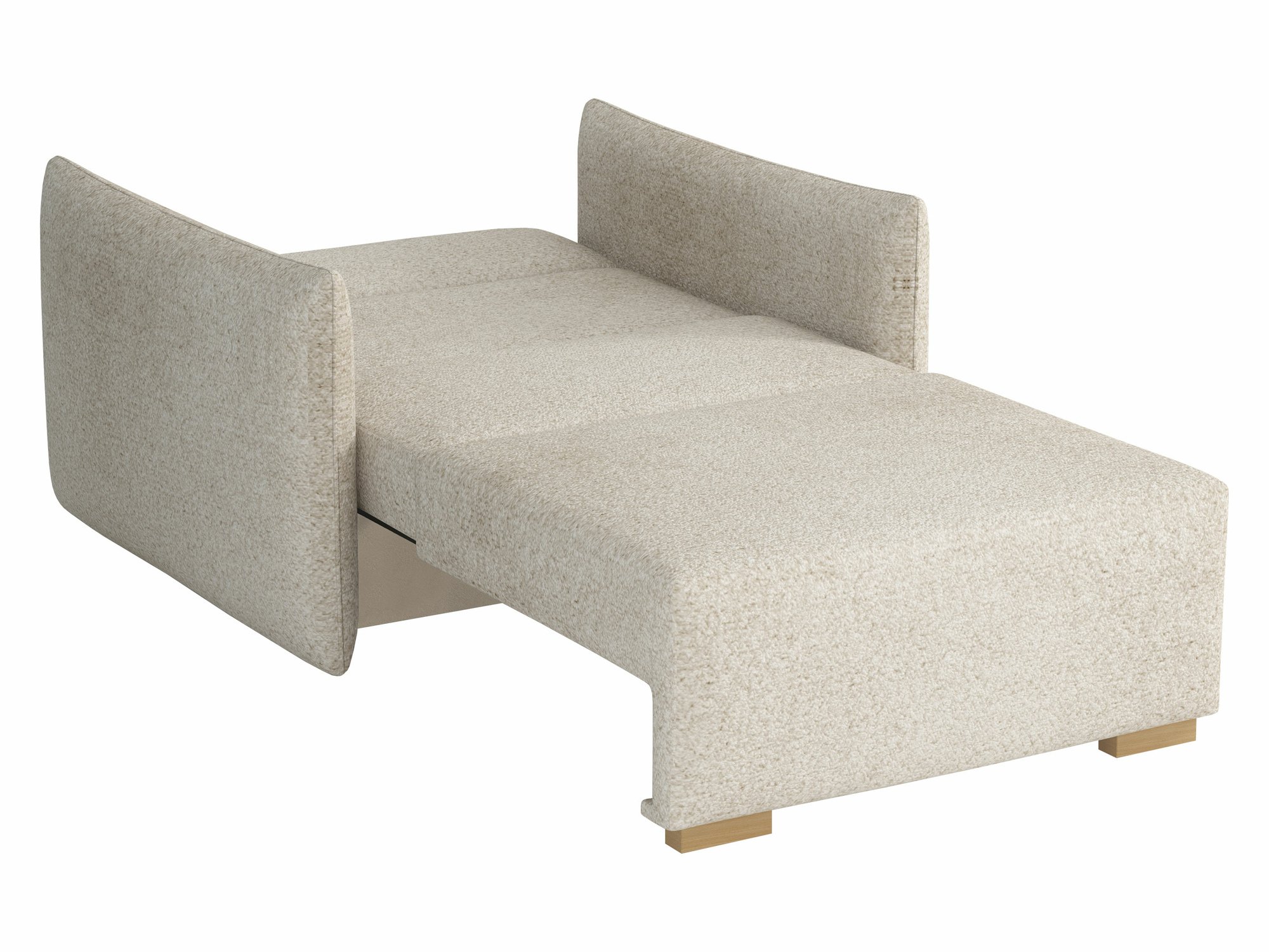 Ce mécanisme de ce meuble est unique en ce sens que la partie qui se déplace le fait sans toucher le sol, ce qui protège ce dernier d'éventuelles rayures. Il suffit de soulever le siège et de le tirer légèrement vers soi. Il suffit ensuite d'abaisser l'arrière du meuble pour préparer une place pour dormir.