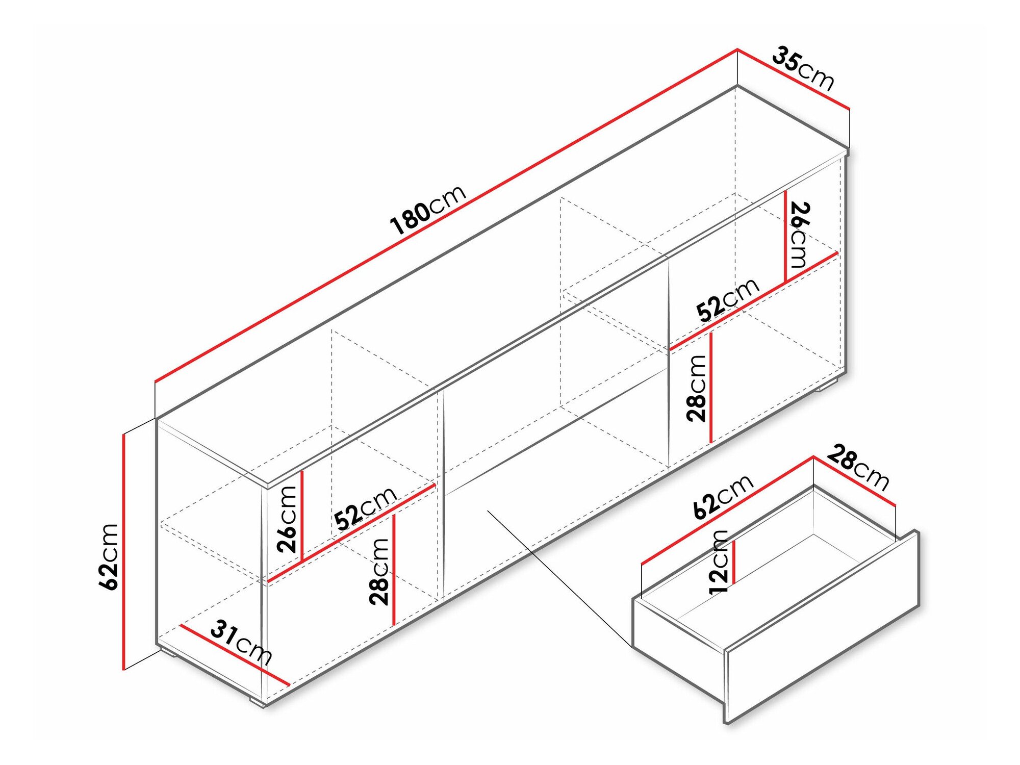 62 cm  180 cm  35 cm