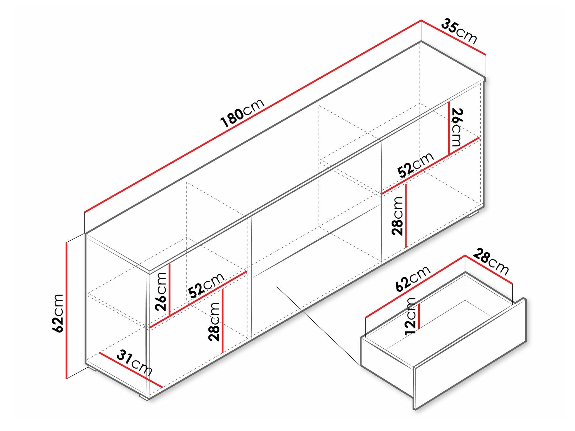 62 cm  180 cm  35 cm