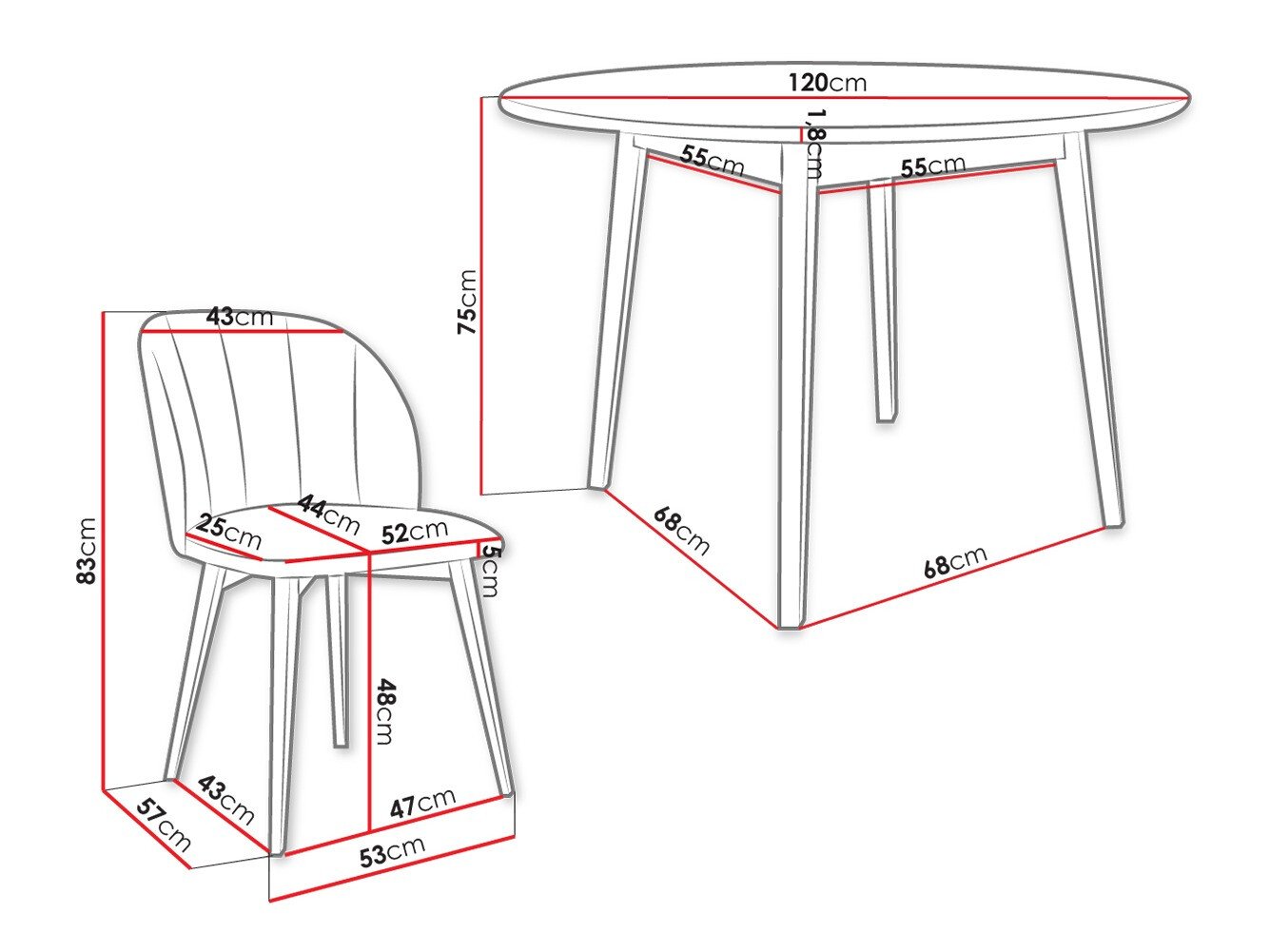83 cm  53 cm  57 cm
