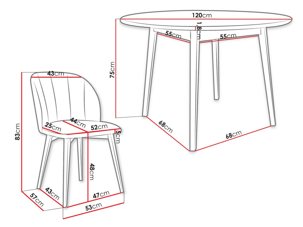 83 cm  53 cm  57 cm