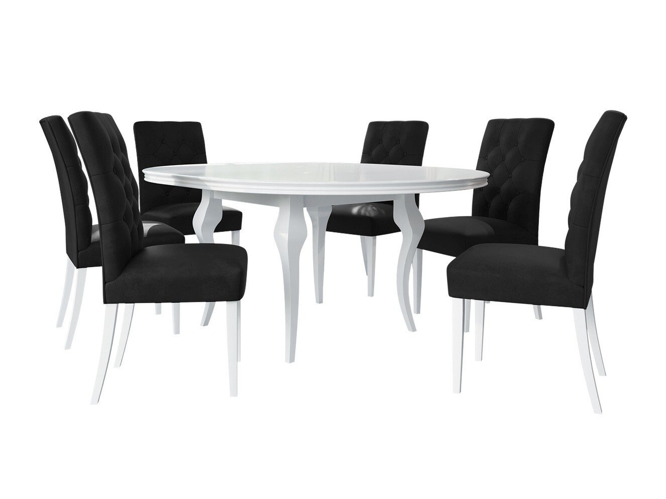 Salle à manger complète Racine 138 (Blanc brillant + Magic Velvet 2219)