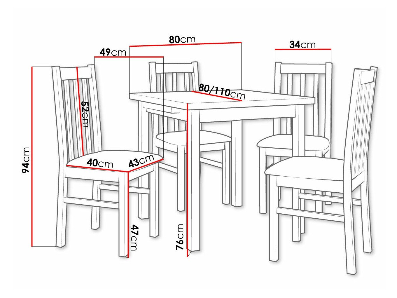 78 cm  80 cm  80 cm