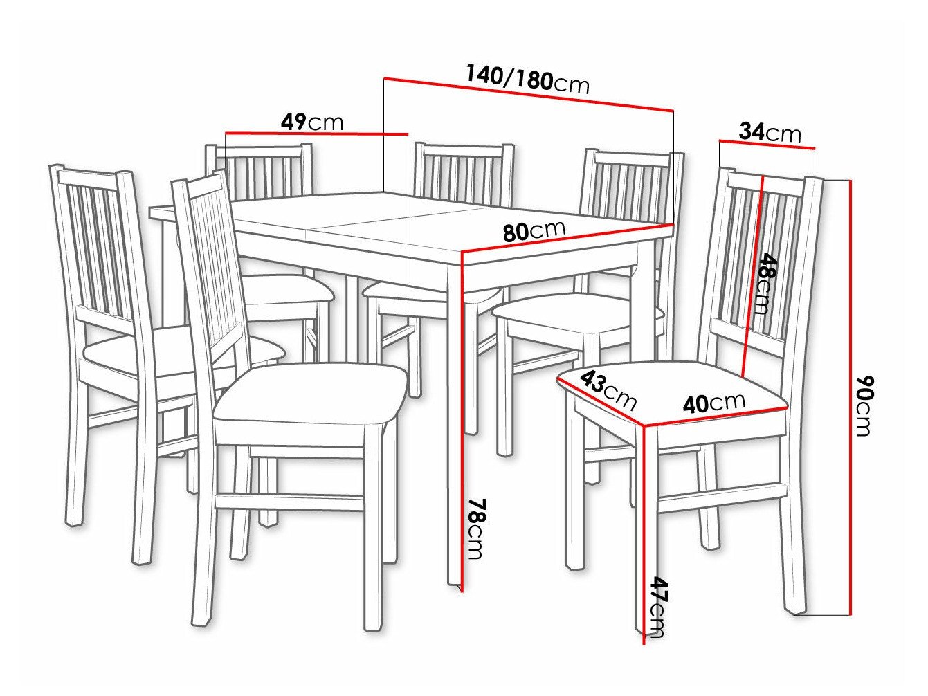 78 cm  80 cm  140 cm