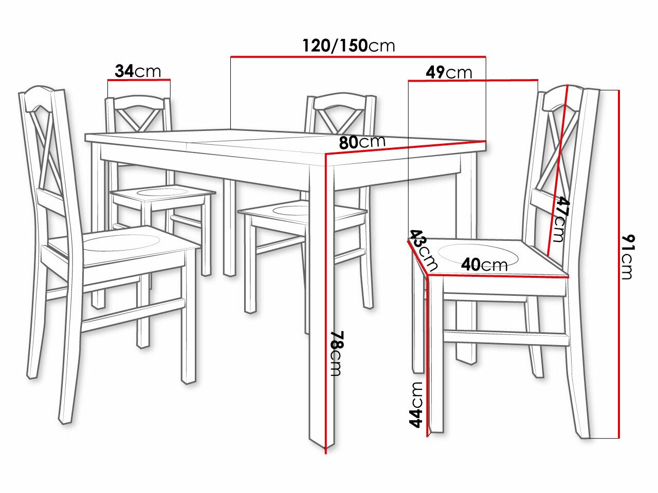 91 x 43 x 49 cm