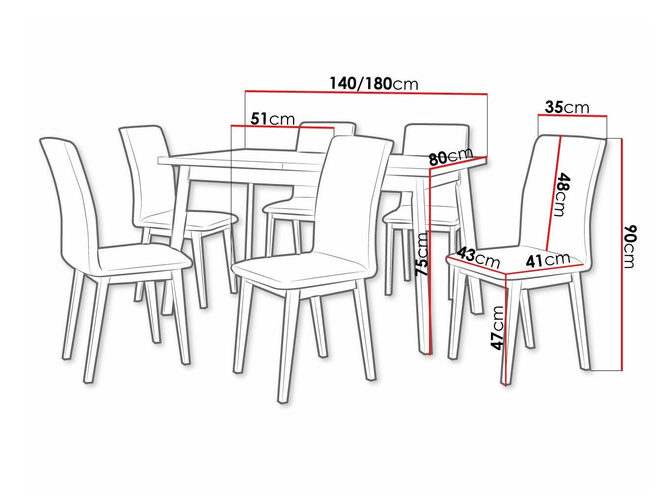 75 cm  80 cm  140 cm