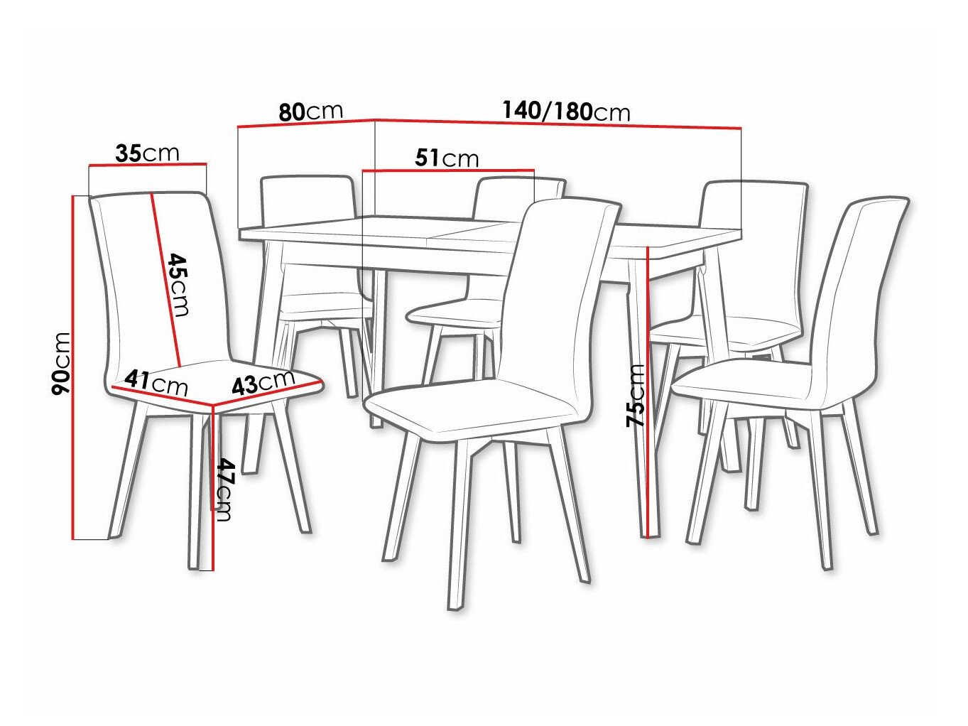 75 cm  80 cm  140 cm